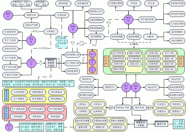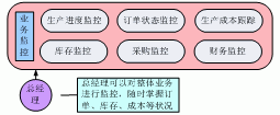 u 總經(jīng)理及相關(guān)人員,可以隨時對業(yè)務(wù)進行整體監(jiān)控,掌握訂單、生產(chǎn)、成本、庫存、采購、財務(wù)等狀況;