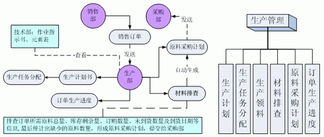 生產(chǎn)管理是整個(gè)系統(tǒng)的重點(diǎn),其中包含了生產(chǎn)計(jì)劃、任務(wù)分配、成本核算、材料排查、進(jìn)度監(jiān)控等重要業(yè)務(wù)節(jié)點(diǎn)。
