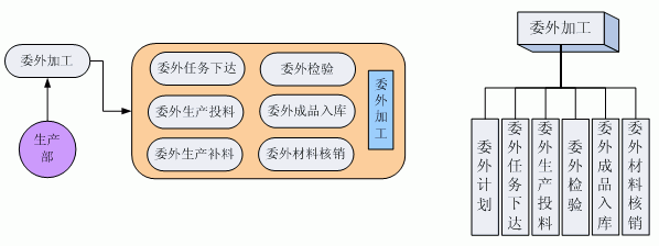 委外加工是生產(chǎn)加工的一個(gè)重要部分,主要包含任務(wù)下達(dá)、生產(chǎn)投料、成品檢驗(yàn)、成品入庫(kù)、委外材料核銷等業(yè)務(wù)。